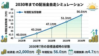 2030年7月の退職まであと5年。育休や貯金の底付きで「爆速入金」が困難になった筆者が、資産1,645万円をどう守り、増やすかを公開。配当再投資と増配を味方につけ、入金力に頼らず資産2,000万円・月5万円の配当を目指す、リアルな資産運用シミュレーションを解説します。